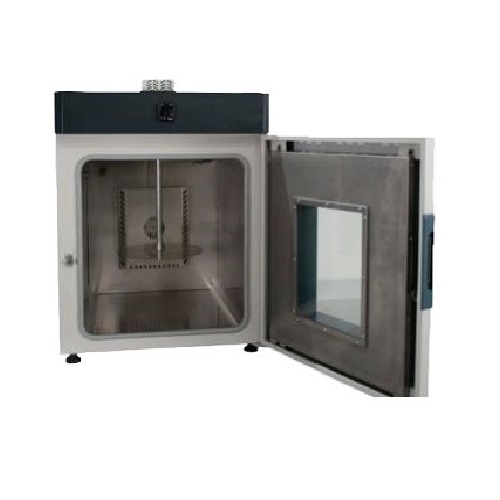 The control system is a digital PID controller with a built-in timer for precise test time management. Temperature control is easily programmable, with a maximum temperature rating of 250°C. To ensure safety, the oven is equipped with a dual safety thermostat to prevent accidental overheating. The plate rotates at a speed of 5-6 rpm.